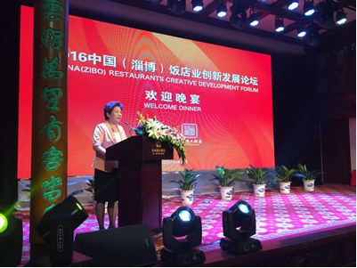 韓明會長在2016中國(淄博)飯店業(yè)創(chuàng)新發(fā)展論壇歡迎晚宴上致辭。